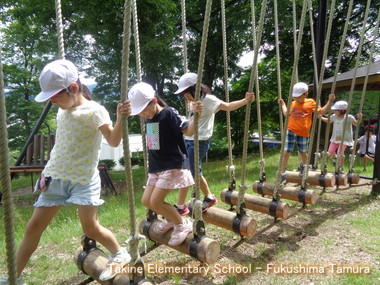 1年生が先週の金曜日(7月3日)に船引町の児童公園へ校外学習に行ってきました。アスレチックや遊具で思い思いに遊んだり、夏の自然の様子に目を向けてたくさんの動植物を観察したりしてきました。小川に入って遊ぶこともできました。
