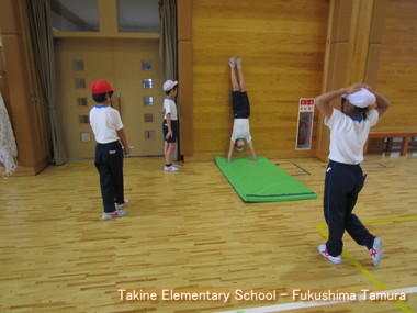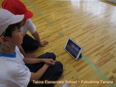 4年生が体育でマット運動をしました。タブレットを使って、自分の動きを動画で確認したり、ネット検索で動き方を調べたりしながら学習を進めています。身近にタブレットがあると、難しい動作もイメージしやすくなり、運動効果が高まります。非常に便利なツールとして活用しています。