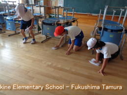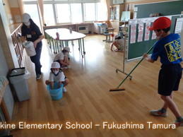 水曜日から一斉清掃が再開され、1年生も班長さんや上級生に教えてもらいながら活動しています。その様子を紹介します。
