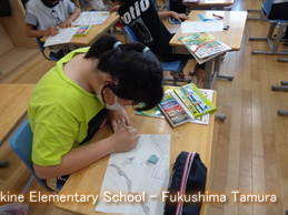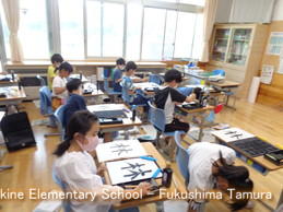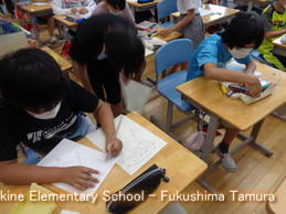 5年生は、図工の時間に「形を集めて」という題材に取り組んでいました。身近にある文房具などの素材から想像を膨らませて絵に表しています。どんな絵が完成するのか楽しみです。
