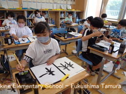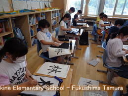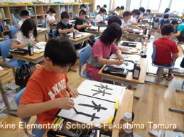 3校時に4年生が書写の学習をしていました。「漢字の組み立て方(部分の組み立て方)」という単元で、「林」という漢字を毛筆で書いていました。みんな集中して真剣に取り組んでいました。
