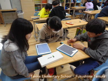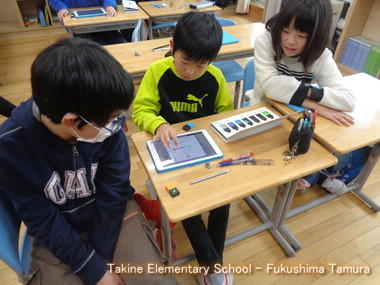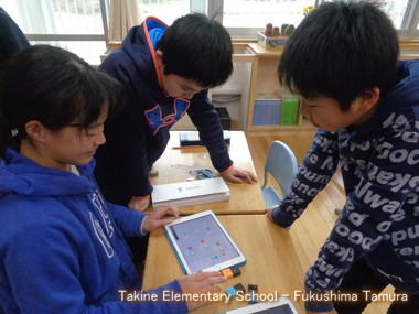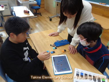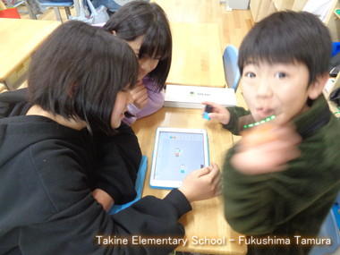 来年度から新学習指導要領が全面実施となり,プログラミング教育が導入されます。本校では先行実施し,6年生の総合的な学習の時間で,環境について考えるツールの一つとして,公益財団法人ソニー教育財団様より「MESH」をお借りしてプログラミングの学習を行いました。この「MESH」とは,センサーやボタンなど、機能ごとに用意されたブロックを組み合わせるだけで、楽しみながら簡単にプログラミングが学べる教材だそうです。子どもたちは,説明を聞いた後,それぞれグループに分かれてタブレットを使って,いろいろなブロックを組み合わせながらプログラミングを楽しみました。