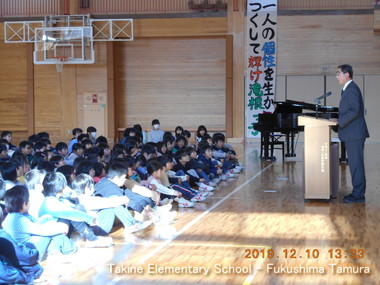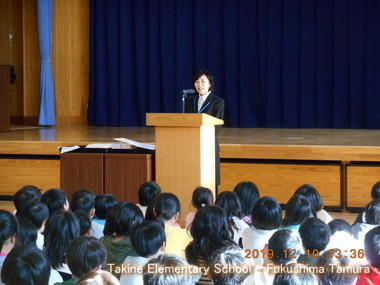 校長からは,「手の防寒と保護のためにも手袋をするとよい。」という話をしました。お子さんは朝家を出る時に手袋をしているでしょうか。確かめてみてください。その後に,12月9日より職務復帰した教員を紹介し,子どもたちに挨拶してもらいました。