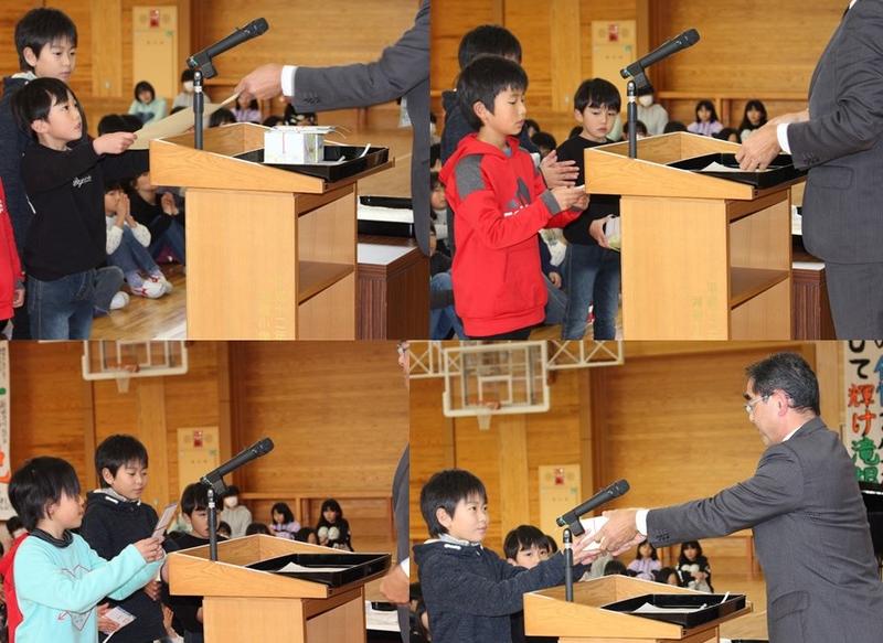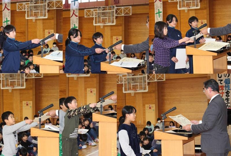次に,各種コンクールで優秀な成績を収めた児童の表彰伝達を行いました。