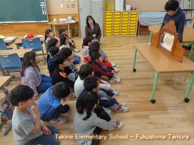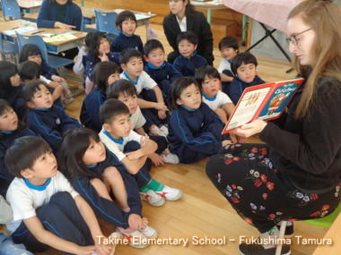 最後に,ALTの英語の本の読み聞かせです。興味深そうに集中して聞いていました。