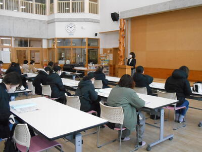 テーマは「いじめをなくそう」です。人権擁護委員の方の話や