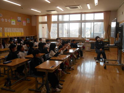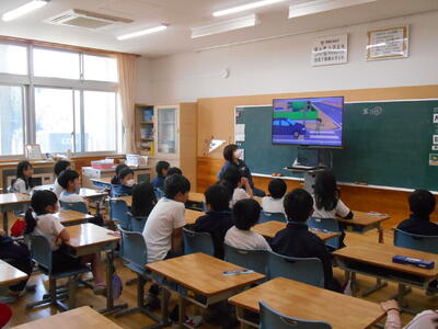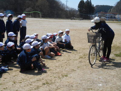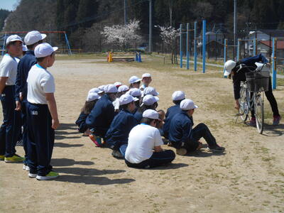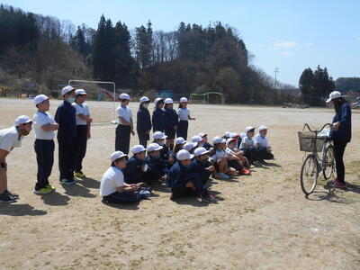 <高学年>交通安全、自転車の乗り方のDVDを見た後、自転車の正しい乗り方
