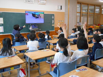<中学年>交通安全のDVDを見た後、自転車の名称や安全な乗り方を確かめました。