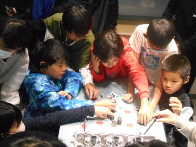 いろいろなクラブを見ながら目を輝かせ、真剣に