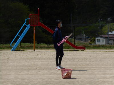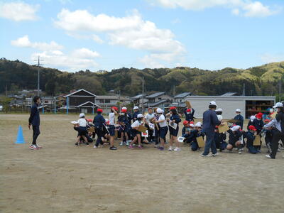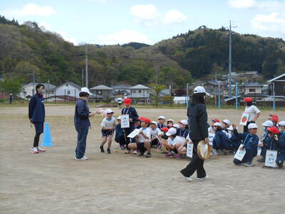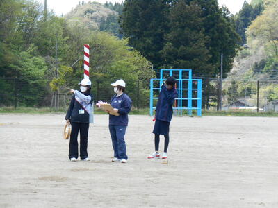 さっそく、低学年や中学年の運動会練習の補助を行っていました。