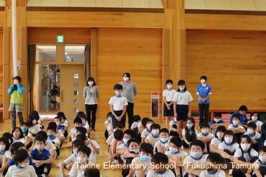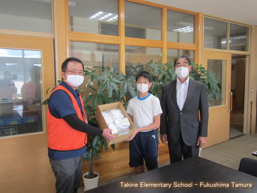 本日、NPO法人「サポートたむら」様より子どもたちにマスクを寄贈していただきました。6年生児童が代表して受け取りました。これから寒くなるにつれてマスクの必要性が高まってくると思います。後日、子どもたちに渡したいと思います。