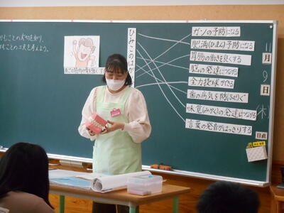 学びました。さっそく今日の給食から実践してほしいですね。