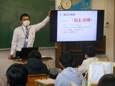 ☆ 教頭先生からは、学校の概要や授業内容、年間行事等のお話がありました。