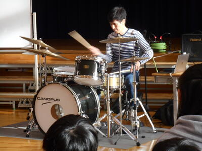 ☆ 代表児童によるドラム体験。
