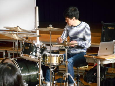 ☆ 高学年のキャリア教育学習で、プロのドラマーとして現在第一線で