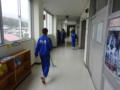 1年生が入学し、学校生活にも次第に慣れてきました。写真は昨日の清掃の様子です。担当する場所の清掃にも慣れ、丁寧に清掃を行う姿が見られます。どの学年も一生懸命に清掃に取り組む姿は、滝根中学校の伝統です。小学校でもしっかり指導されているからこそ、このような姿になれるのだと思います。