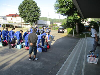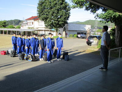 いよいよ本日は県中大会です。本校の選手たちは快晴の天気の下、元気に各会場へと出発しました。バレーボール部、ソフトテニス部、剣道部、卓球部のみなさん、全力で頑張ってきてください。