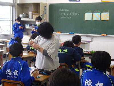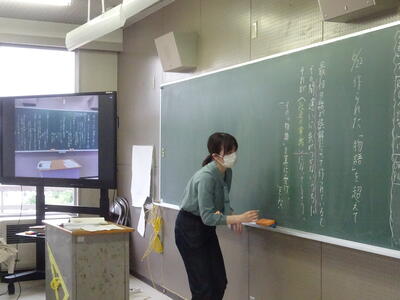 2023年6月22日 12時54分本日の授業では、タブレットの写真機能や学習支援ソフトを活用した場面が多く見られました。3年生では国語の授業で、前の時間の板書をディスプレイに映し確認できるようにしていました。