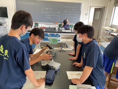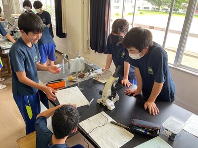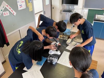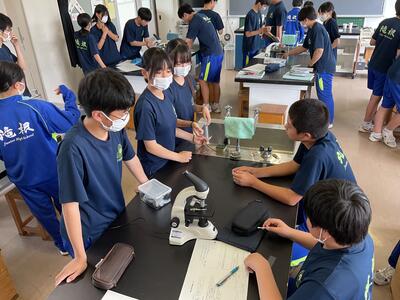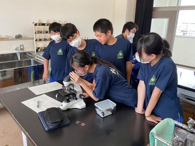2年生は理科の授業で動物の細胞について学んでいます。今日の実験では、口内の粘膜を顕微鏡を使って観察していました。