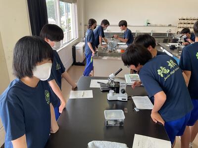 2024年6月27日 15時01分2年生は理科の授業で動物の細胞について学んでいます。今日の実験では、口内の粘膜を顕微鏡を使って観察していました。