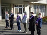 今回は、更生保護女性会の方々及び警察署の方々、合計11名が、朝7:10~8:00まで、生徒たちに気持ちの良いあいさつをしていただきました。