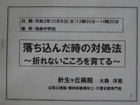 針生ヶ丘病院 公認心理師・精神保健福祉士・介護支援専門員 大森洋亮先生に、特別講師として来校していただき、「落ち込んだ時の対処法~折れないこころを育てる~」と題して、3年生に対して講演をしていただきました。