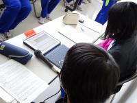 今回も新型コロナウイルス感染症の対応のため、放送形式で実施しました。生徒会のアイデアで、タブレット端末を活用し、賛否の意見表明を各クラスから「ロイロノート」という学習ソフトをとおして、放送室の本部に伝達する形にチャレンジしました