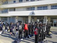 この日は、「大地震によりパソコン室から出火」という設定で避難を開始し、全校生徒が体育館に避難完了するまでに3分10秒かかりました。どの生徒も冷静に、かつ静かに避難行動をとることができました。