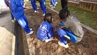11/27(金)放課後、学級役員やボランティアの生徒で球根植えを行いました。