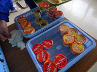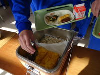 普段の給食とは趣を変え、豊富な種類のメニューの中から、自分好みの料理の組み合わせを選んでいました。