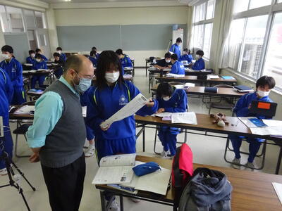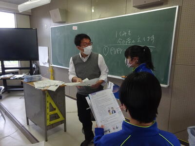 【3年生】英語:課題となる文章を教科担任やALTに話し、確認してもらっていました。