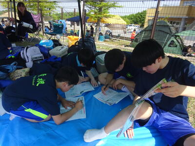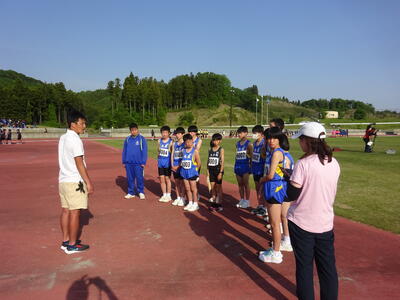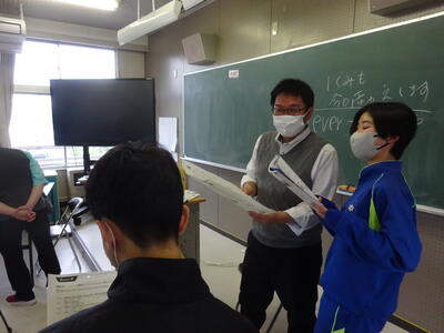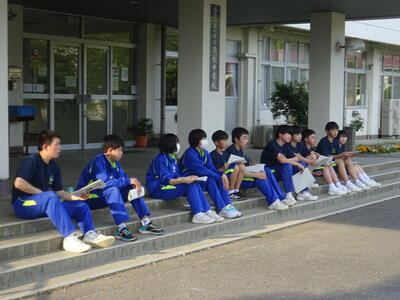 放課後、陸上大会に出場する生徒たちは最後のミーティングを行っていました。明日から2日間の大会ですが、気温が高くなるため熱中症には十分に注意して参加してほしいと思います。