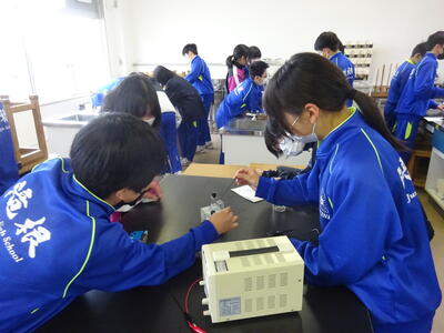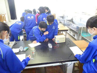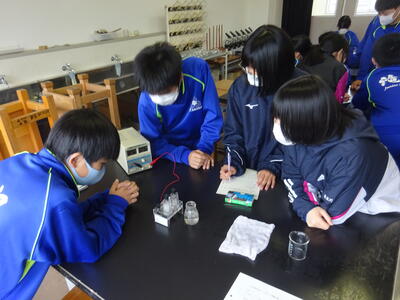 【2年生】理科:水酸化ナトリウム溶液を電気分解し、気体を調べる実験