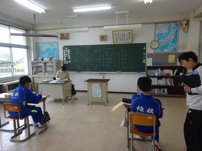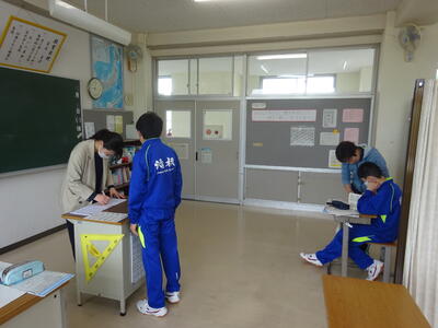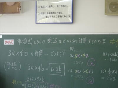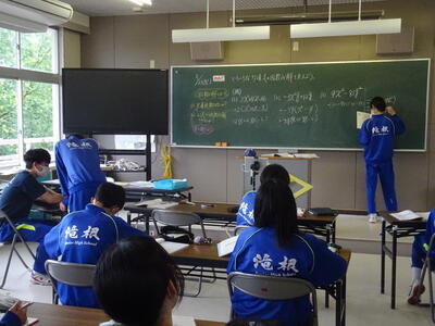 2・3年生も授業に一生懸命に取り組んでいました。3年生は英語の新出単語を確認し、発音の練習を行っていました。2年生は多項式の計算で、注意すべき点について確認を行っていました。