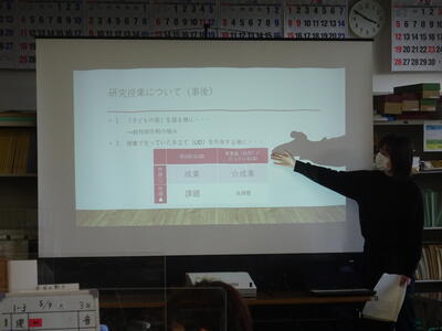 本日放課後、本校の教員が研究テーマをもとに年間を通して研修を行うための現職教育全体会を開催しました。研究主題は「ユニバーサルデザインの視点を生かした主体的、対話的で深い学びの実現に向けた授業改善」です。本校ではこの研究主題のもと、2年間研究を推進してきました。今年度は研究3年目でまとめの年となります。