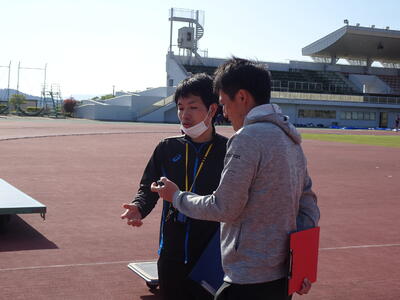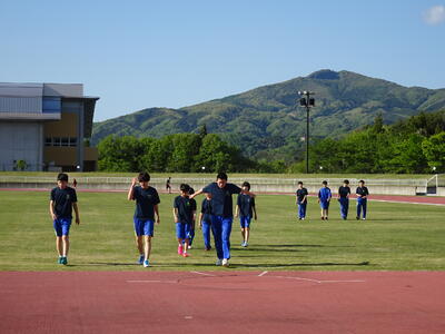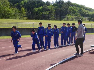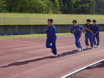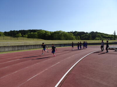 5月11日(木)、特設陸上部は田村市陸上競技場で練習を行いました。今年は小学校の陸上競技大会が5月に行われるため、小学生も練習に来ていました。また、中学校も2校練習に来ていました。利用者が少なかったため、生徒たちは十分な練習を行うことができました。
