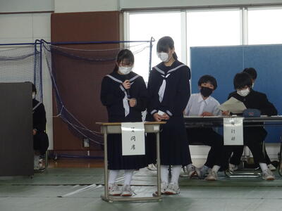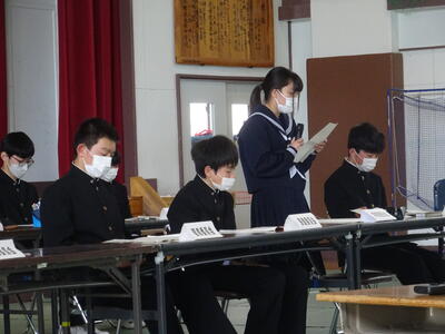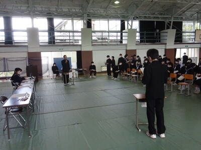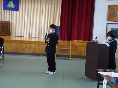 本日午後、前期の生徒会総会が行われました。校長先生から自治的な活動の大切さについてお話があった後、生徒会会長W.Tさんが「相手の良いところに目を向けて生活していきましょう」とあいさつを行いました。その後、各委員会や部活動から活動計画についての報告があり、全ての議案が承認されました。