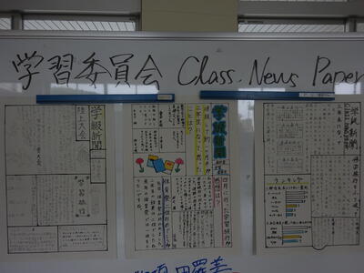 〇学習委員会の学級新聞:昇降口・階段に掲示