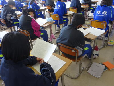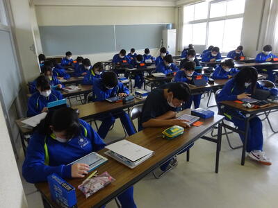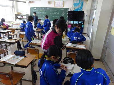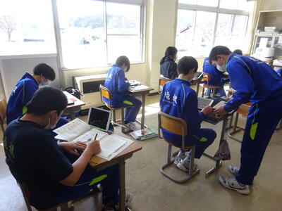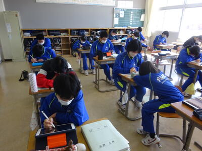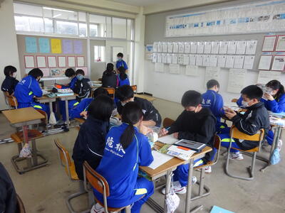 令和4年度の学習も残すところあと3日となりました。1・2年生の授業では、既習事項の復習や次年度の活動の準備を着々と進めていました。生徒たちは課題や活動の目的に沿ってしっかりと活動を行っていました。