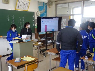 3年生も卒業し、今日は今年度最後の奉仕委員会でした。3年生がいなくても1・2年生だけでしっかりと活動の反省を行っていました。
