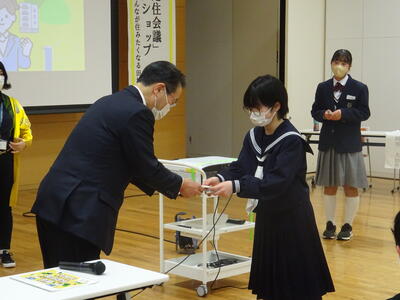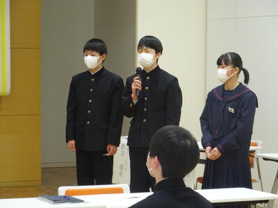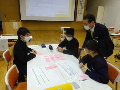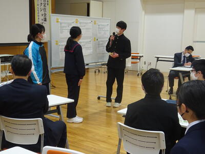 市教委主催のF2サミットや子ども議会、中教研特別活動部会主催の生徒会交歓会に参加してきた生徒もいましたが、今回は田村市の市長さんや副市長さんと直接お会いして、直接名前を名乗って名刺交換を行う機会があり、緊張した面持ちで会議に参加していました。市長さん、副市長さんからはグループ協議でも助言をいただいたり、発表後にも講評をいただいたりと大変勉強になる機会となりました。また、他校の生徒に自分の考えを伝え、話し合うことができたことは、生徒たちにとって大変大きな自信となったようです。