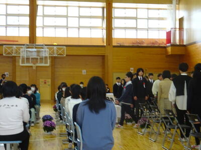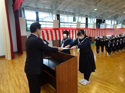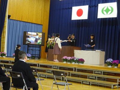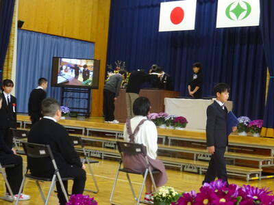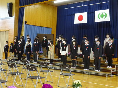 滝根小学校の卒業証書授与式に、本校校長が出席しました。卒業式は、厳かな中にも温かい雰囲気の中で行われ、31名の児童が卒業証書を手に巣立っていきました。式の中で6年生の歌声はすばらしく、堂々とした姿で歌っていました。