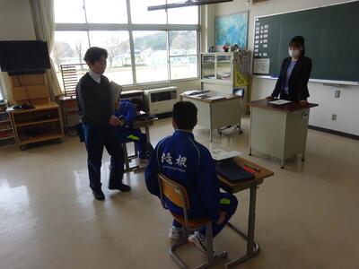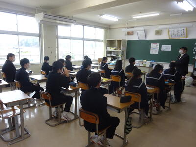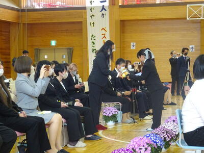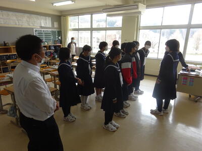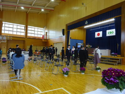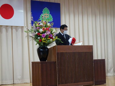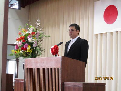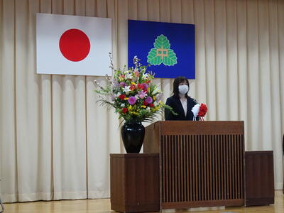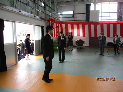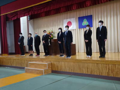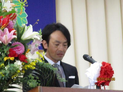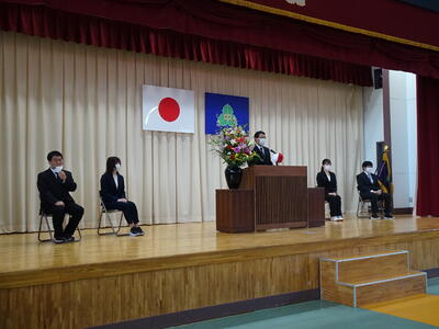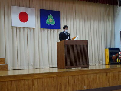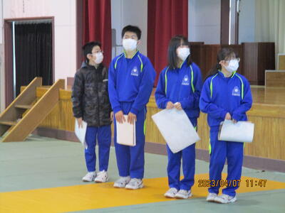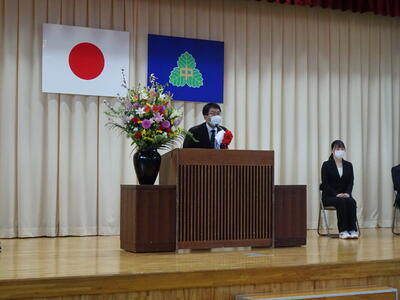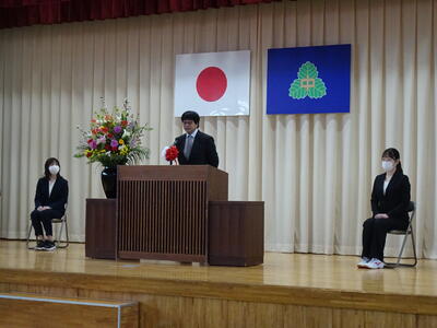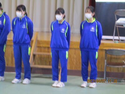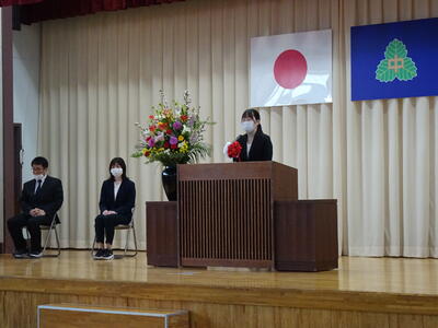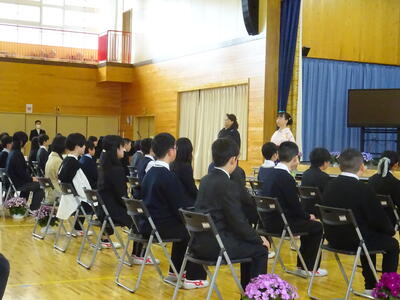 着任式では、新しく着任した4名の教職員に対して、生徒代表のN・Sさんが「滝根中学校の生徒は少し羽目を外してしまうところがありますが、みんな優しい人たちですのでよろしくお願いします。」と歓迎の言葉を述べました。