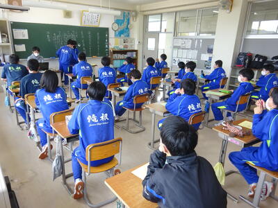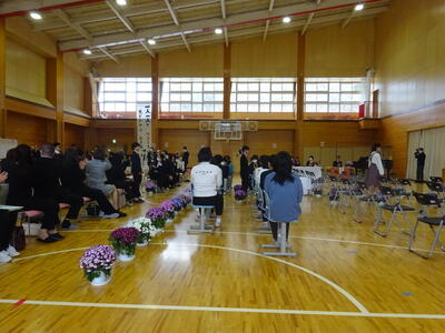 最後に全員で校歌を合唱で歌いました。(滝根中学校の校歌は3部合唱です)