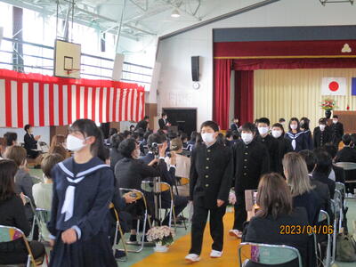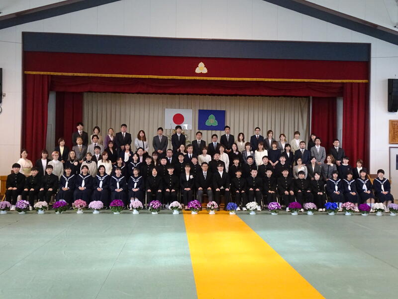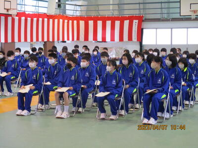 4月6日(木)午後2時より、第77回滝根中学校入学式を挙行いたしました。32名の1年生が入学し、全校生97名での令和5年度の教育活動がスタートしました。式辞では校長が「一つ一つの丁寧な積み重ねを大切にし、小学校で培ってきた力をさらに伸ばしてほしい」と述べました。祝辞では、PTA会長様より「色々なことにチャレンジしてください。ワクワクとドキドキが皆さんを成長させてくれます。一日一日を大切にして中学校生活を味わい、楽しんでください。」と励ましの言葉をいただきました。