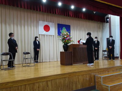 式辞では、この一年の1・2年生の頑張りと成長をほめる言葉と、「4月からの飛躍に向けた助走はもう始まっている」と激励の言葉が述べられました。