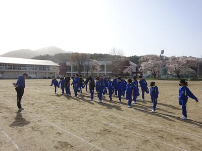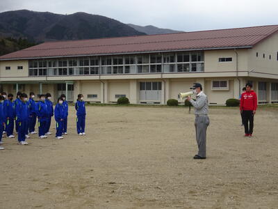 練習の終わりには、校長先生から「陸上競技は個人競技になりますが、仲間と練習しているから大会などに参加した時もまとまって行動できるようにしよう」とお話がありました。