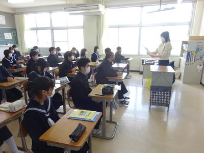 〇単語の意味や発音について確認し、教科担任に続いて発音の練習を行いました。