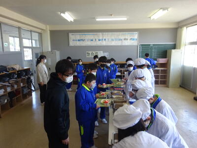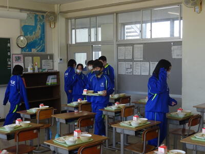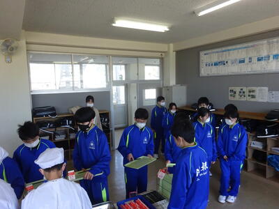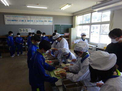〇1年生給食準備中