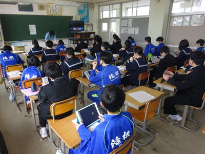 〇国語ではタブレットを使って、過年度の全国学力調査の問題を解き、来週の調査の確認を行いました。